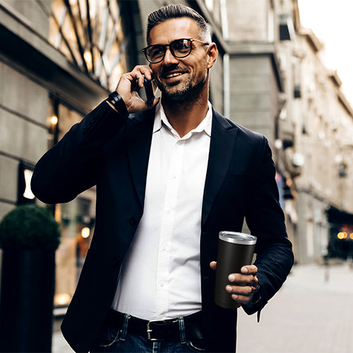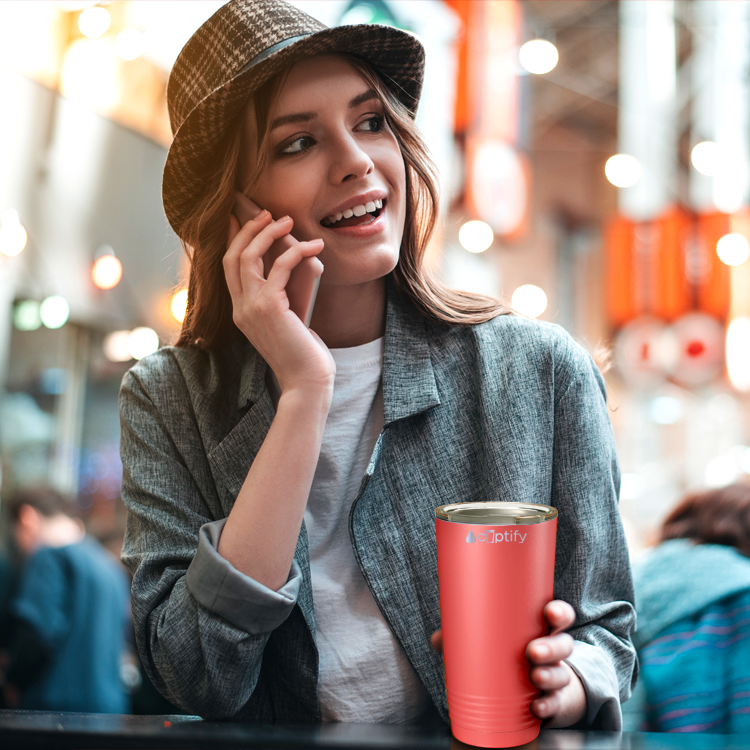 This 20oz stainless steel tumbler features a unique ridged grip, and is crafted using kitchen grade 18/8 stainless steel, providing unparalleled strength and durability. Enjoy your favorite beverages at the perfect temperature for hours, thanks to its double-wall vacuum insulation. The powder coating finish not only adds style but also enhances the exterior's protection. Designed with a narrower bottom, our tumbler effortlessly fits into most standard cup holders.