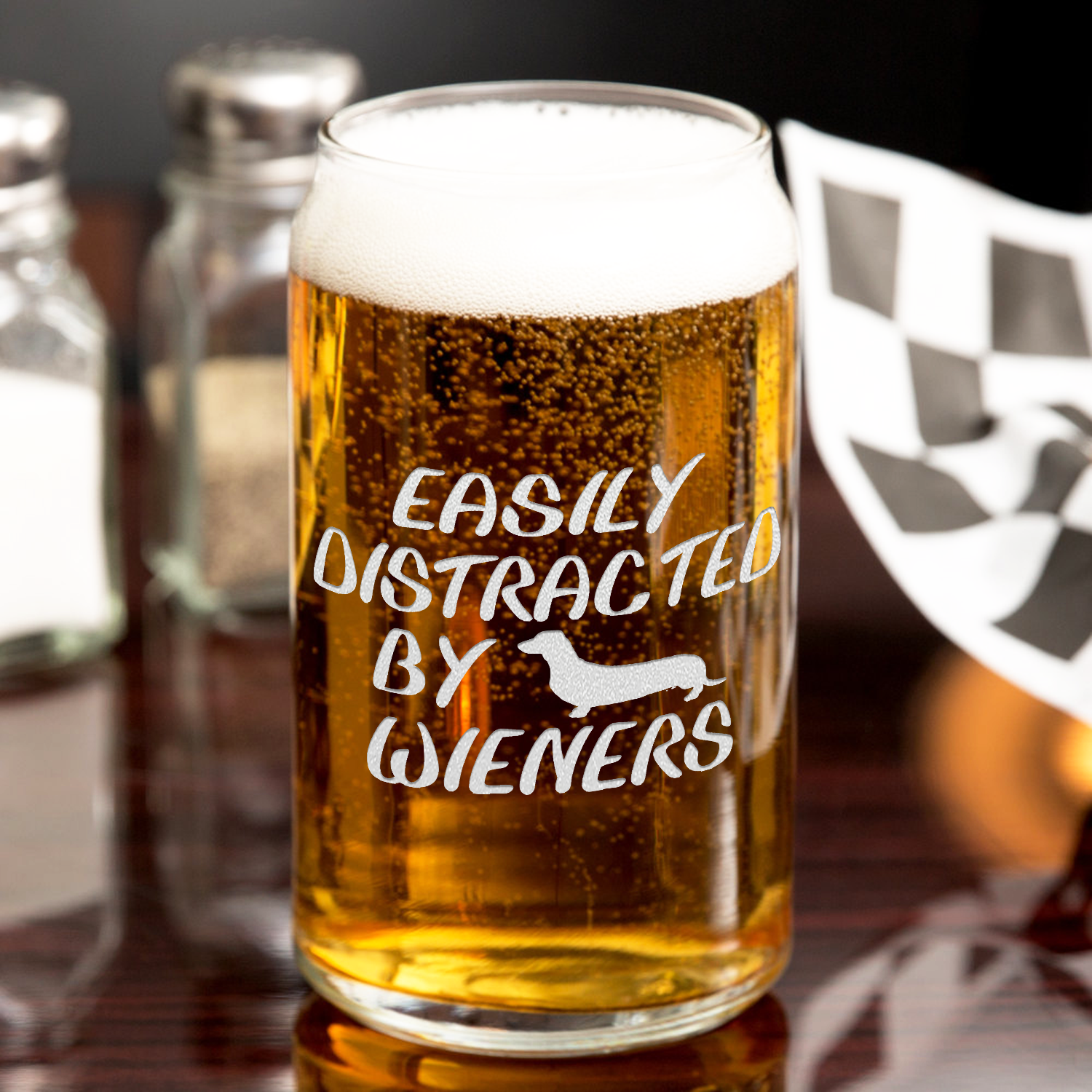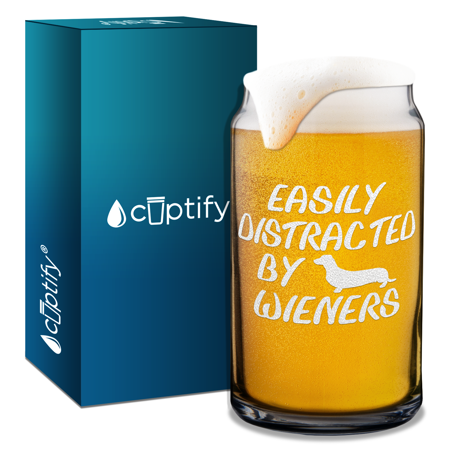 Easily Distracted by Wieners 16oz Beer Glass Can