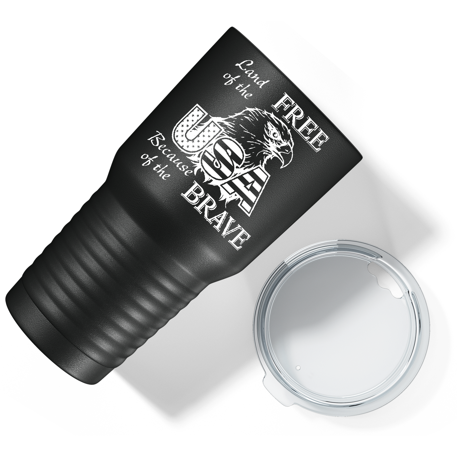 Land of Free Because of the Brave on Black 30 oz Stainless Steel Veteran Tumbler