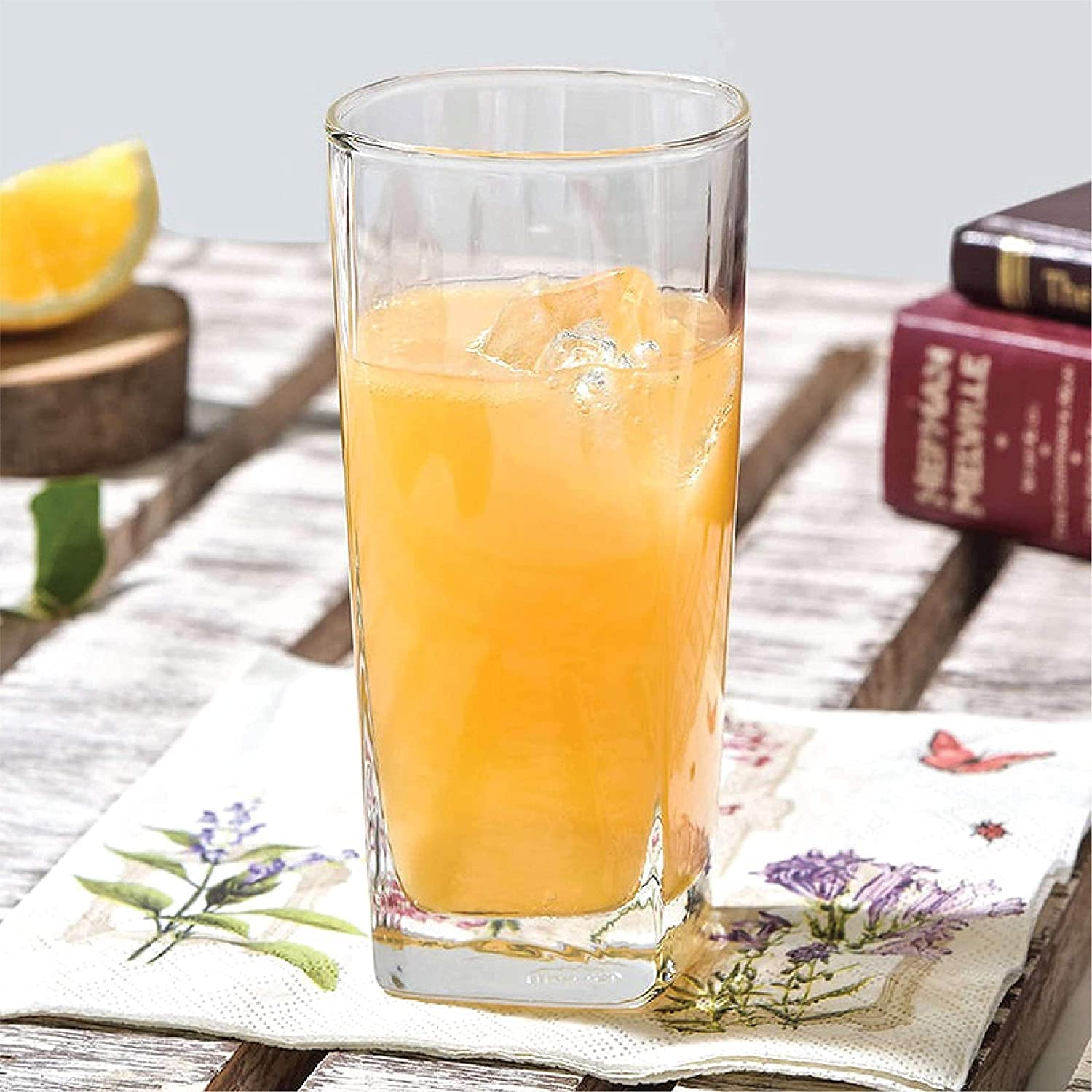 These highball glasses are thick and durable, resisting scratches, chipping, and cracking. Its square shape makes it comfortable to hold without slipping.
